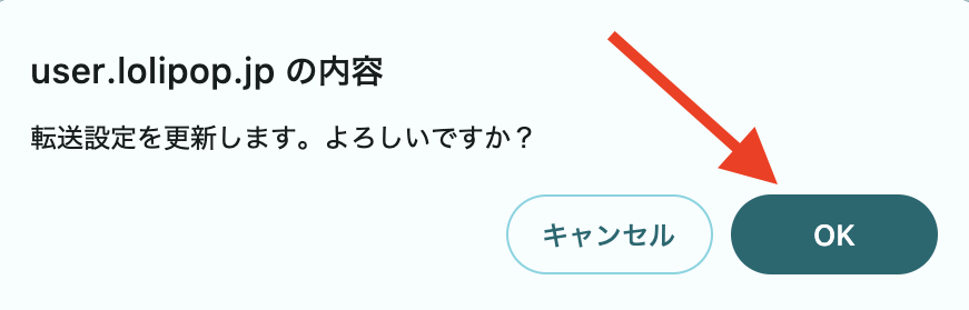 「転送設定を更新します。よろしいですか?」ポップアップが表示されたら、OKボタンを押します。