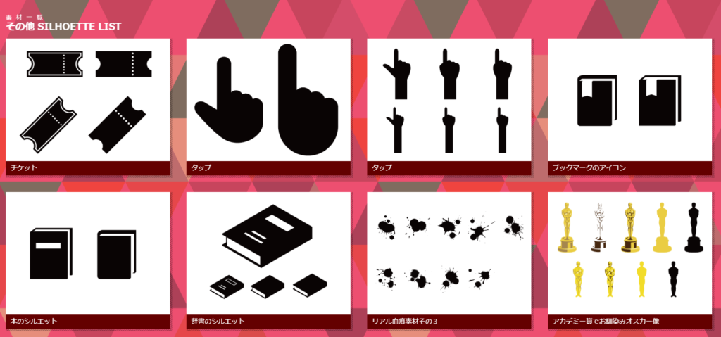 その名の通り、白黒シルエット素材を多数掲載しているサイト。