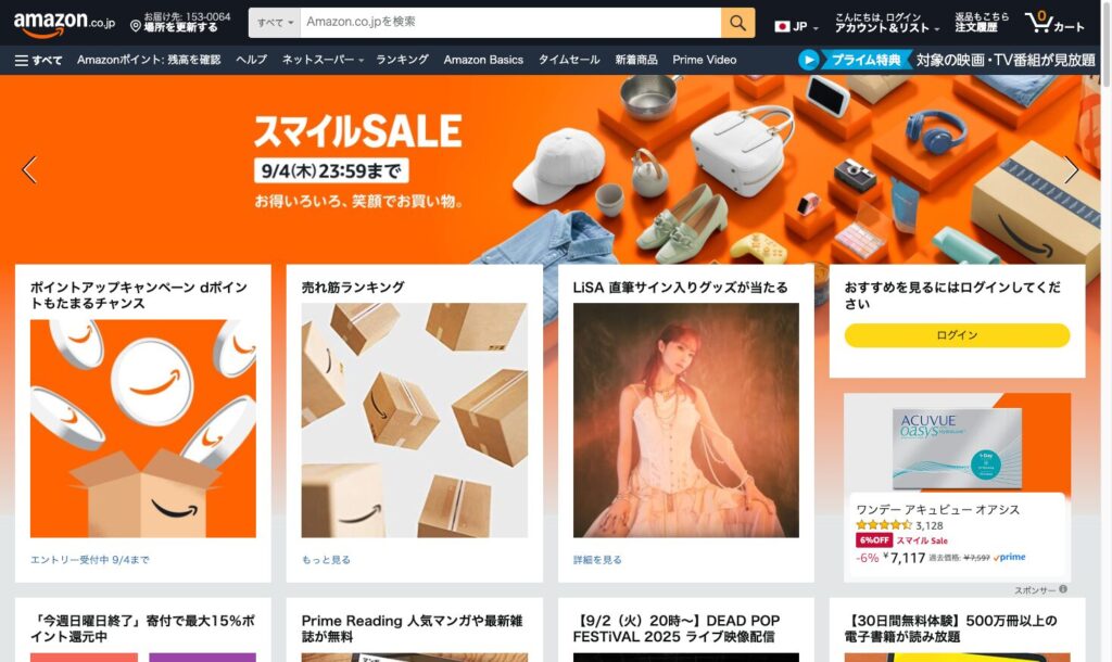 セール情報が大きく表示され、アクセス直後に興味を引きます。