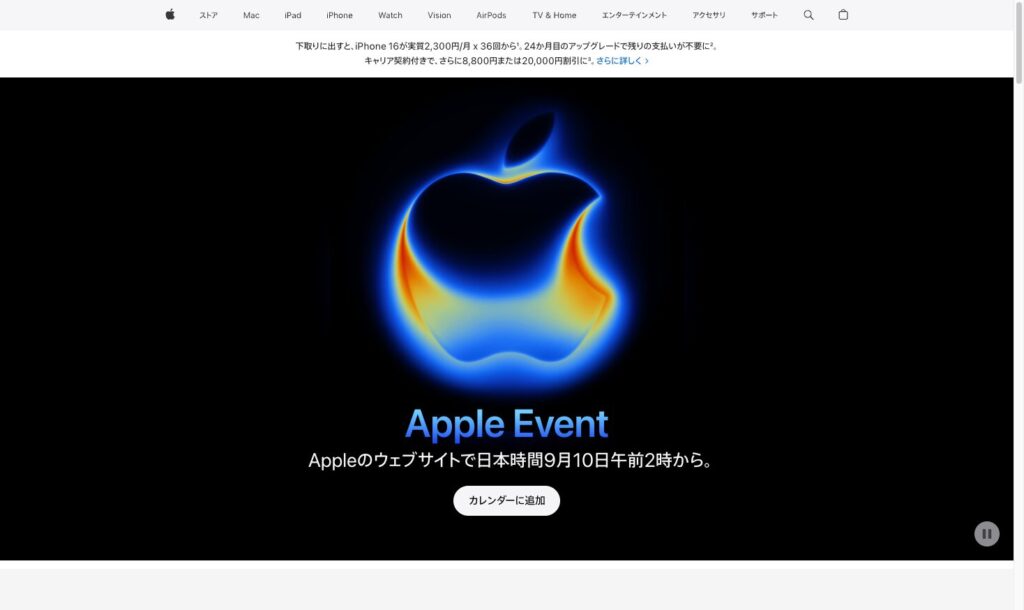Apple公式サイト のトップページのアップルマークのロゴは、Appleらしさを象徴するキービジュアル(KV)になっています。
