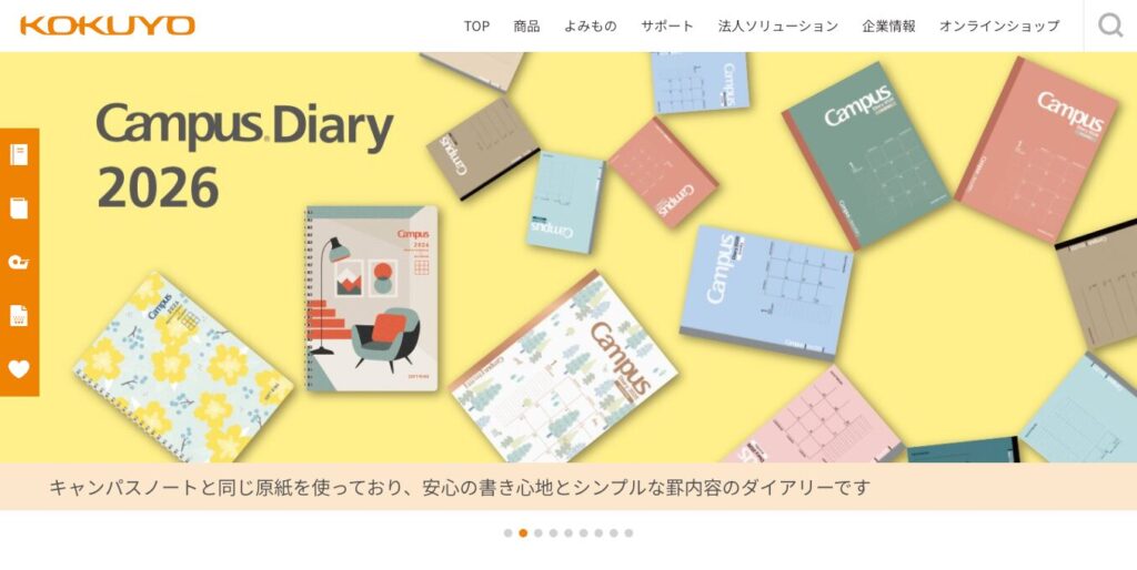 コクヨ株式会社公式商品情報サイト のメインビジュアル(MV)では、新製品が大きく配置され、訪問者に直感的に「今の主役商品」を伝えています。