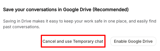 私の場合はCancel and use Temporary chat「保存しない」を選択しました。